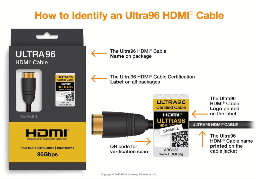 Для работы с HDMI 2.2 потребуются новые устройства с поддержкой стандарта, сертифицированные кабели Ultra96 (прошедшие обязательное тестирование), а также необходимо проверять наличие официальной маркировки Ultra96 на продукции, так как предыдущие версии кабелей и оборудования не смогут обеспечить полную функциональность нового стандарта.